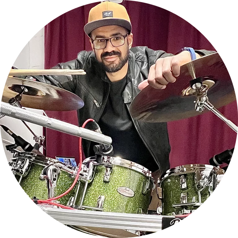 Largely self-taught, Alex developed his skills through hands-on band experience and online courses, building a solid musical foundation. In addition to drums, he also plays guitar, collaborates regularly with other musicians, and releases his own original music.